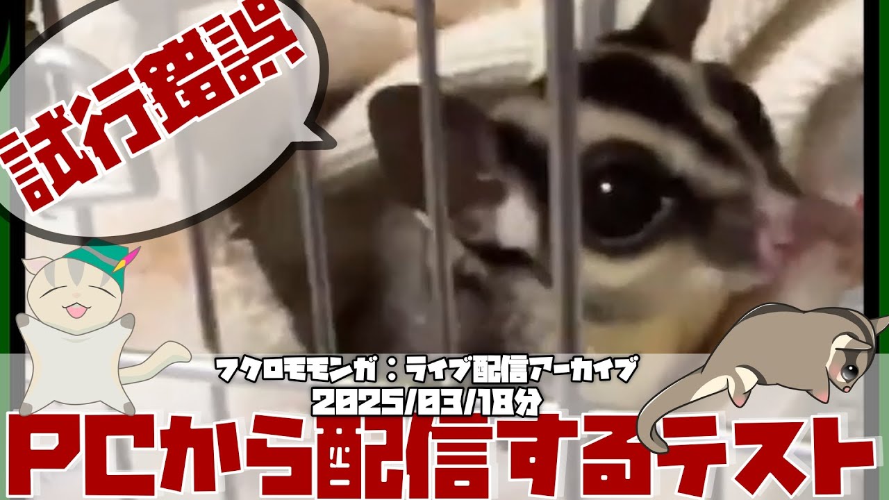 割とあっさりとできたので驚きました。 今日のフクロモモンガです。高画質動画はリンク先からどうぞ 【 #フクロモモンガ 】【 #朝活 】試行錯誤:フクモモの朝散歩をPC・OBSから配信するテスト【2025/03/18】【作業用】【睡眠用】【 #ペット動画 】【 #おつモモンガ 】 https://t.co/x66BC0poq6 https://t.co/d3zRGIeOHK